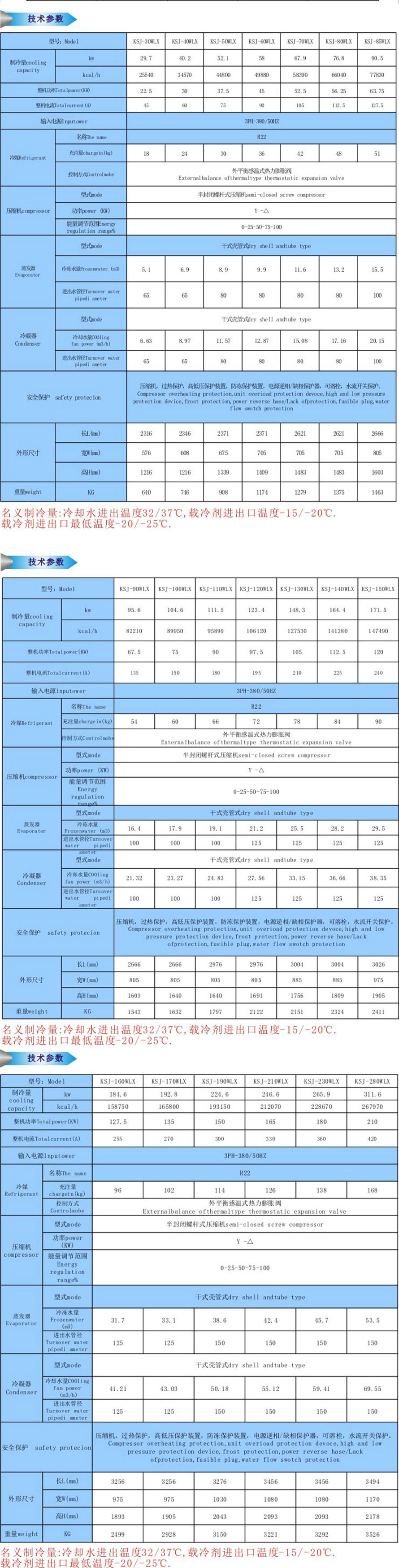 可提供-5℃~-35℃低溫載冷劑;制冷量范圍12KW-2000KW。載冷劑可為乙二醇或氯化鈣水溶液(蒸發(fā)器防腐設(shè)計(jì))。